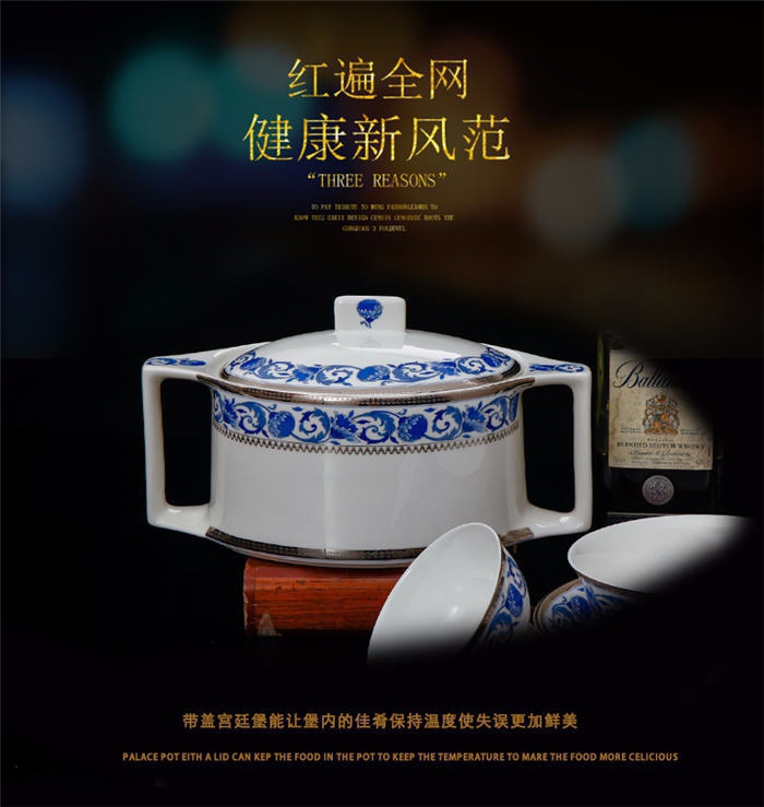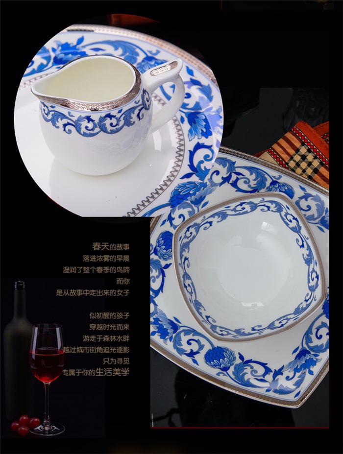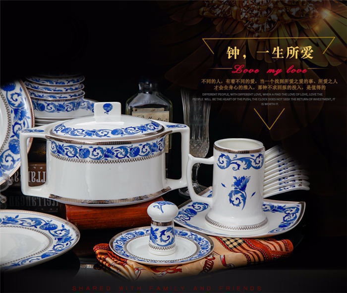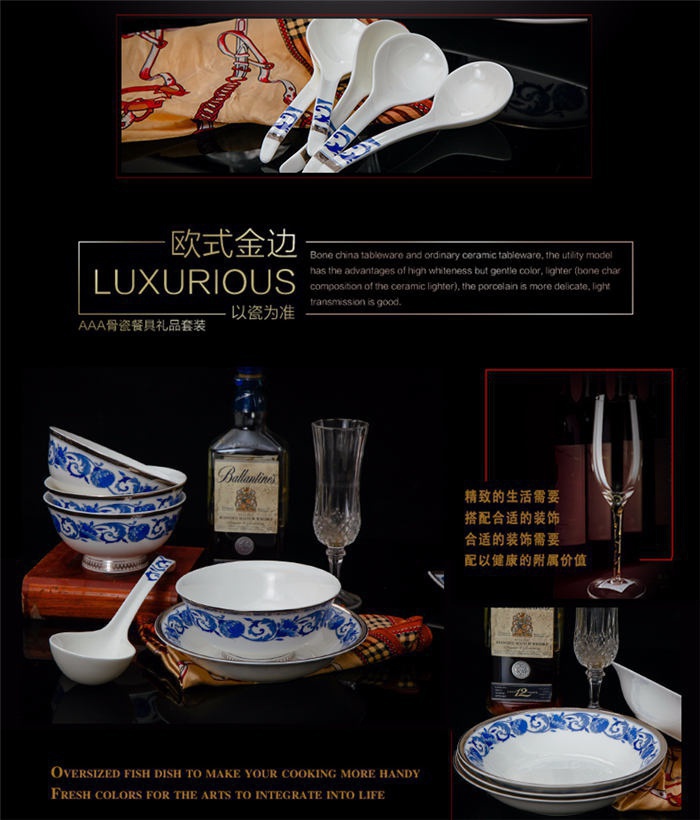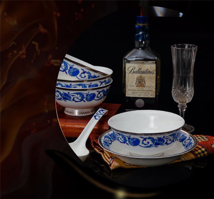 60頭德蘭城堡,一個(gè)湯煲,一個(gè)魚(yú)盤(pán),一個(gè)十四寸圓盤(pán),一個(gè)湯勺,一個(gè)牙簽筒,一個(gè)筷子筒,四個(gè)面碗,兩個(gè)沙拉碟,十個(gè)4.5寸飯碗,十個(gè)味碟,十個(gè)調(diào)羹,四個(gè)八寸圓盤(pán),四個(gè)八寸方盤(pán),十個(gè)筷子架。