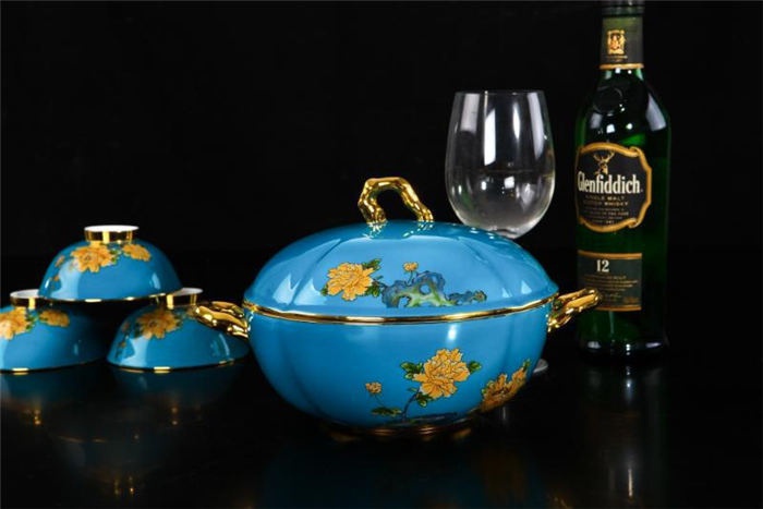 4.5寸碗10個,小湯勺10個,筷子架10個,骨碟10個,湯煲1個,大湯勺1個,菜盤10個,大圓盤1個,魚盤1個,果盤1套,大合器2套,湯盅2套,面碗2個